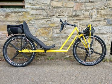 The Generation Four Bicycle combines the best of upright and recumbent bicycles. It is a practical, high performance machine that effectively integrates and engages the rider for a uniquely satisfying riding experience. The G4 is easy to ride, accelerates and climbs like the best upright bikes, and has the speed, comfort and safety of the best recumbents. The rider can easily put both feet immediately on the ground.